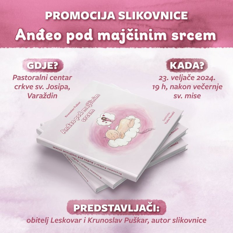 U petak, 23. veljače, u Pastoralnom centru crkve sv. Josipa u Varaždinu, održat će se prva promocija prve pro-life edukativne slikovnice „Anđeo pod majčinim srcem” autora Krunoslava Puškara.