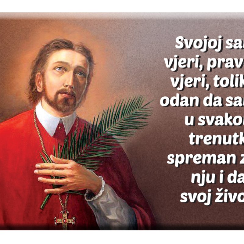 Magnetić s likom i citatom sv. Marka Križevčanina dimenzija 7 x 5 cm.